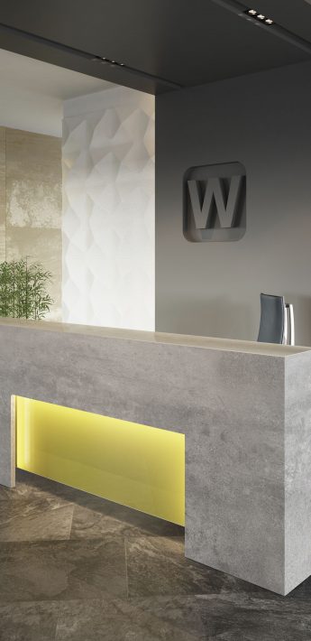 Front lady złożony jest z dwóch warstw. Pierwszą stanowi mocna rama o kolorze betonu. Za nią znajduje się barwna płaszczyzna oświetlona lampami LED RGB. Wydobywające się z wnętrza ramy światło podkreśla głębię konstrukcji.