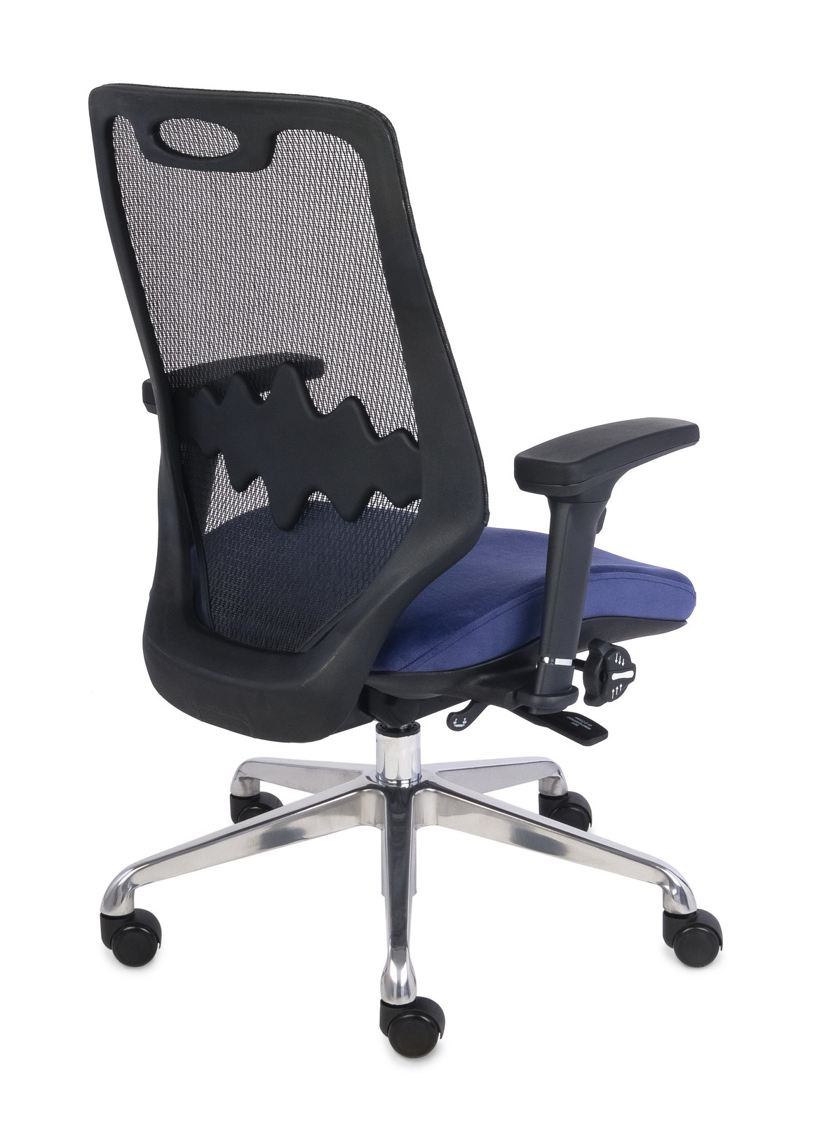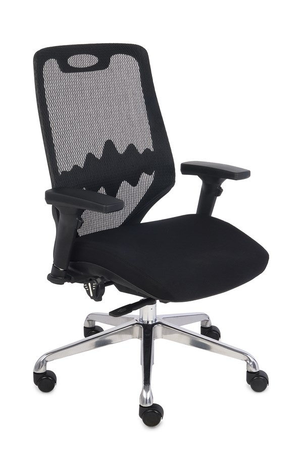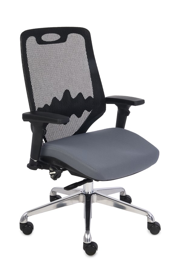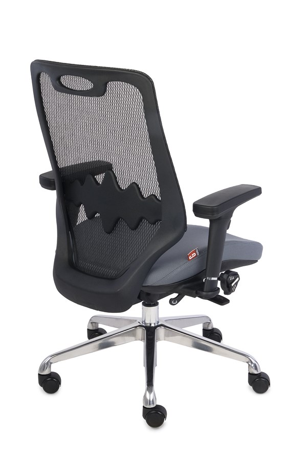 Fotel Futura 3 S to zaawansowane ergonomicznie krzesło biurowe. Zostało wyposażone w niemalże wszystkie dostępne obecnie rozwiązania, takie jak : regulowane podłokietniki w 4 płaszczyznach, regulowaną głębokość siedziska, regulacje profilu siedziska, synchroniczny mechanizm ruchowy zapewniający nieustanne podparcie pleców Użytkownika. Oparcie fotela wykonane zostało z praktycznej siatki, która dostosowuje się do pleców użytkownika zapewniając równocześnie odpowiednią cyrkulacje powietrza. W części lędźwiowej oparcie wyposażone jest w profil o regulowanej wysokości. Siedzisko jest tapicerowane, do Państwa dyspozycji oddajemy szeroką gamę trwałych tkanin w wielu kolorach.