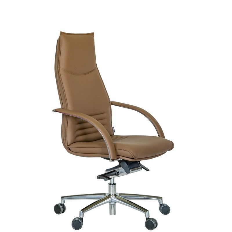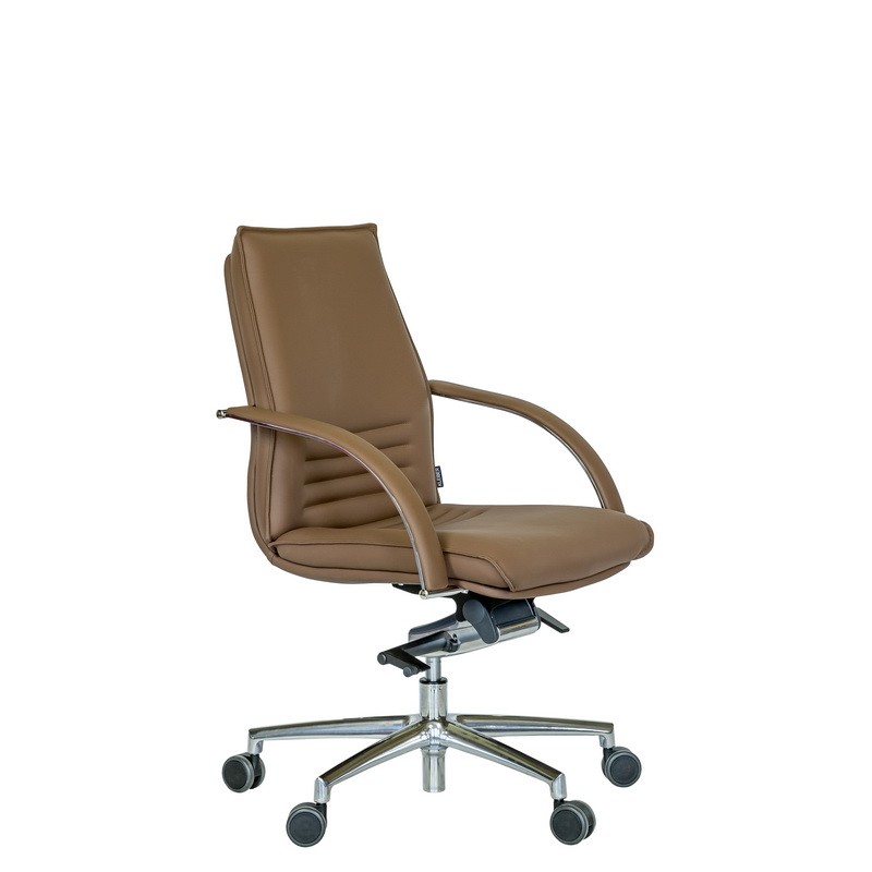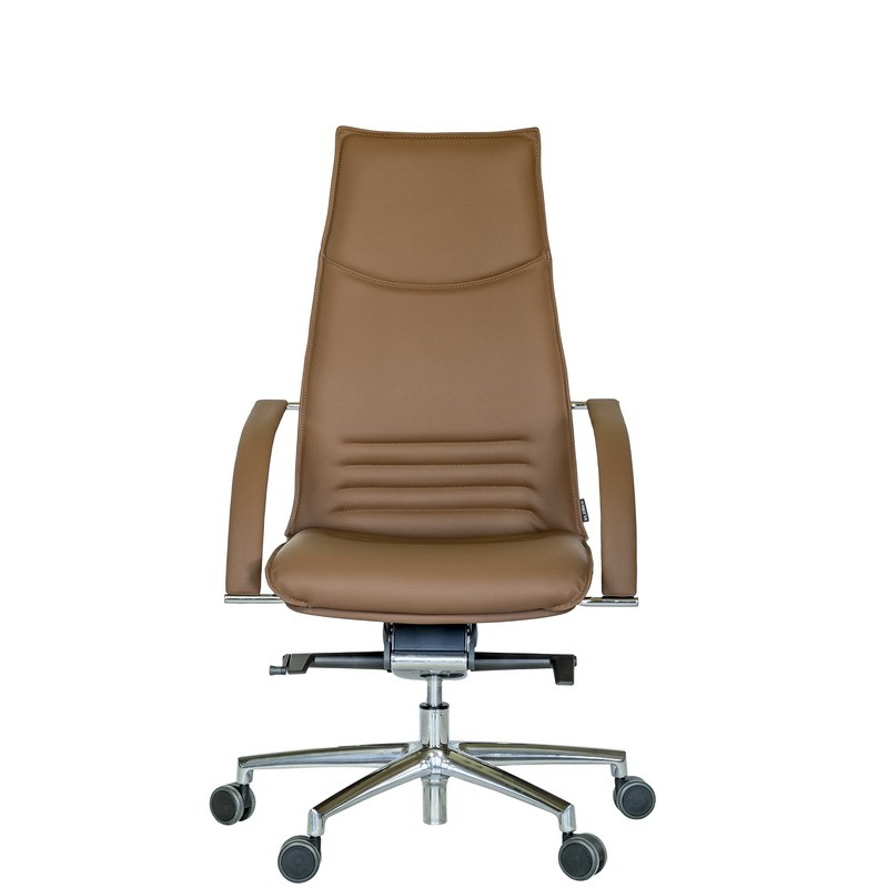 Elegancki fotel obrotowy pasujący do klasycznych gabinetów. Idealnie wpisuje się w koncepcję eleganckich biur zarządzających najwyższego szczebla. Do wyboru najwyższej klasy materiały tapicerskie, a także różne wersje elementów metalowych. Standardowo Integra wyposażona jest w podłokietniki stałe metalowe malowane z nakładką tapicerowaną, mechanizm uchylny z regulacją charakterystyki pracy, teleskop amortyzujący z płynną regulacją wysokości siedziska, podstawę aluminiową malowaną oraz rolki twarde z hamulcem automatycznym.