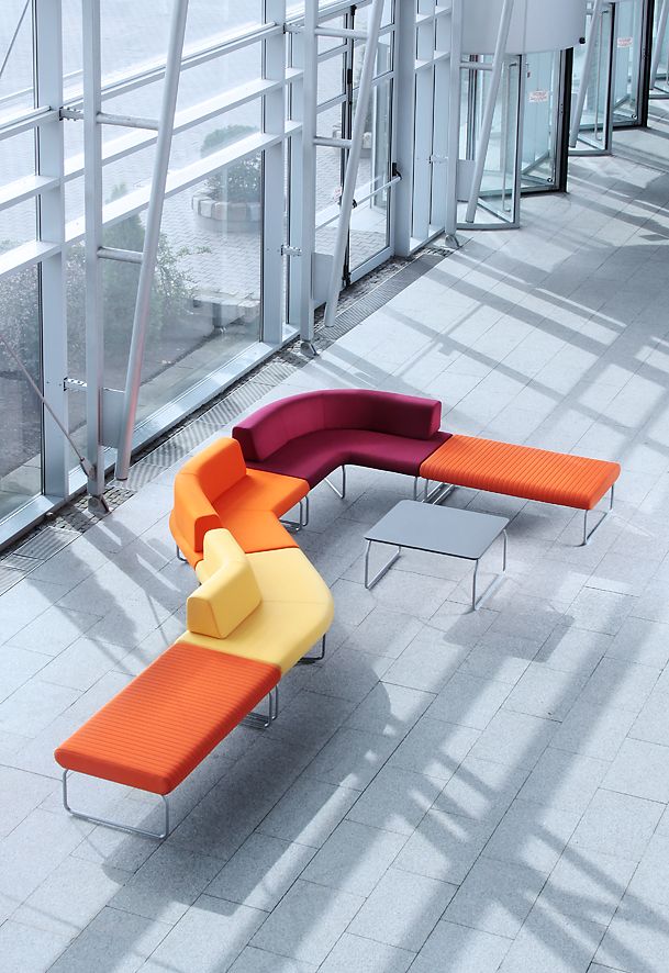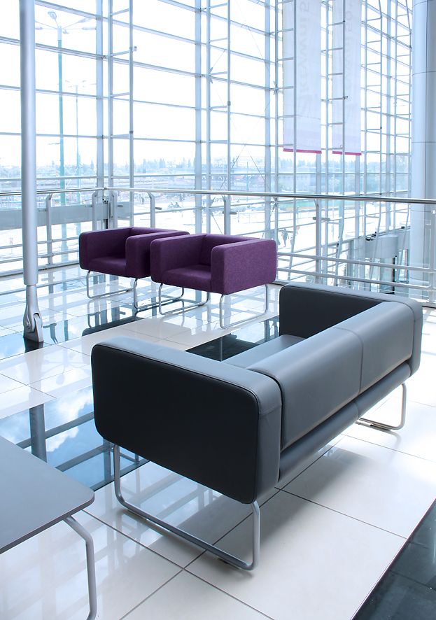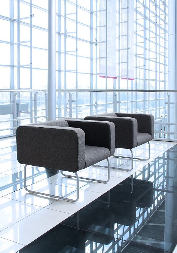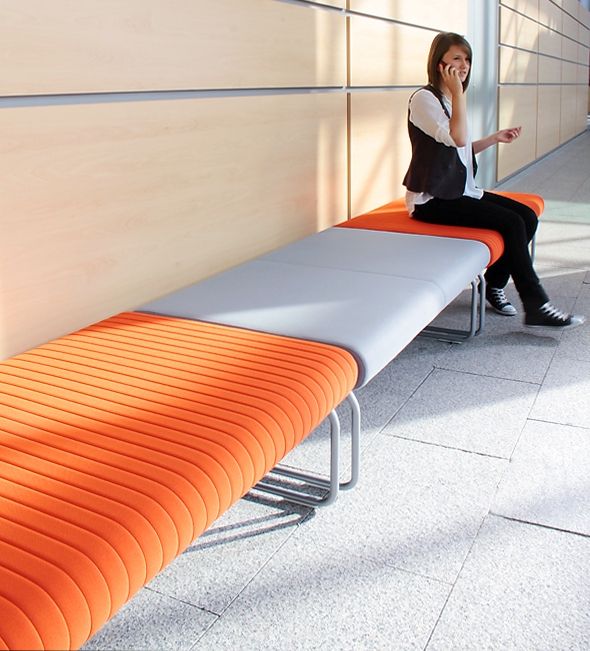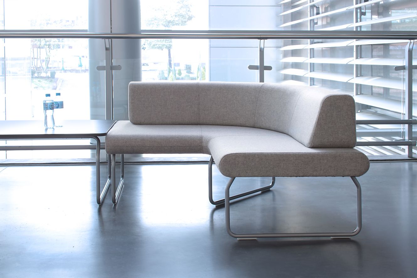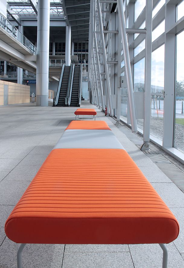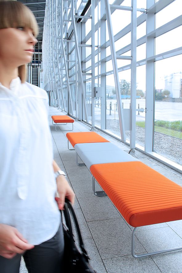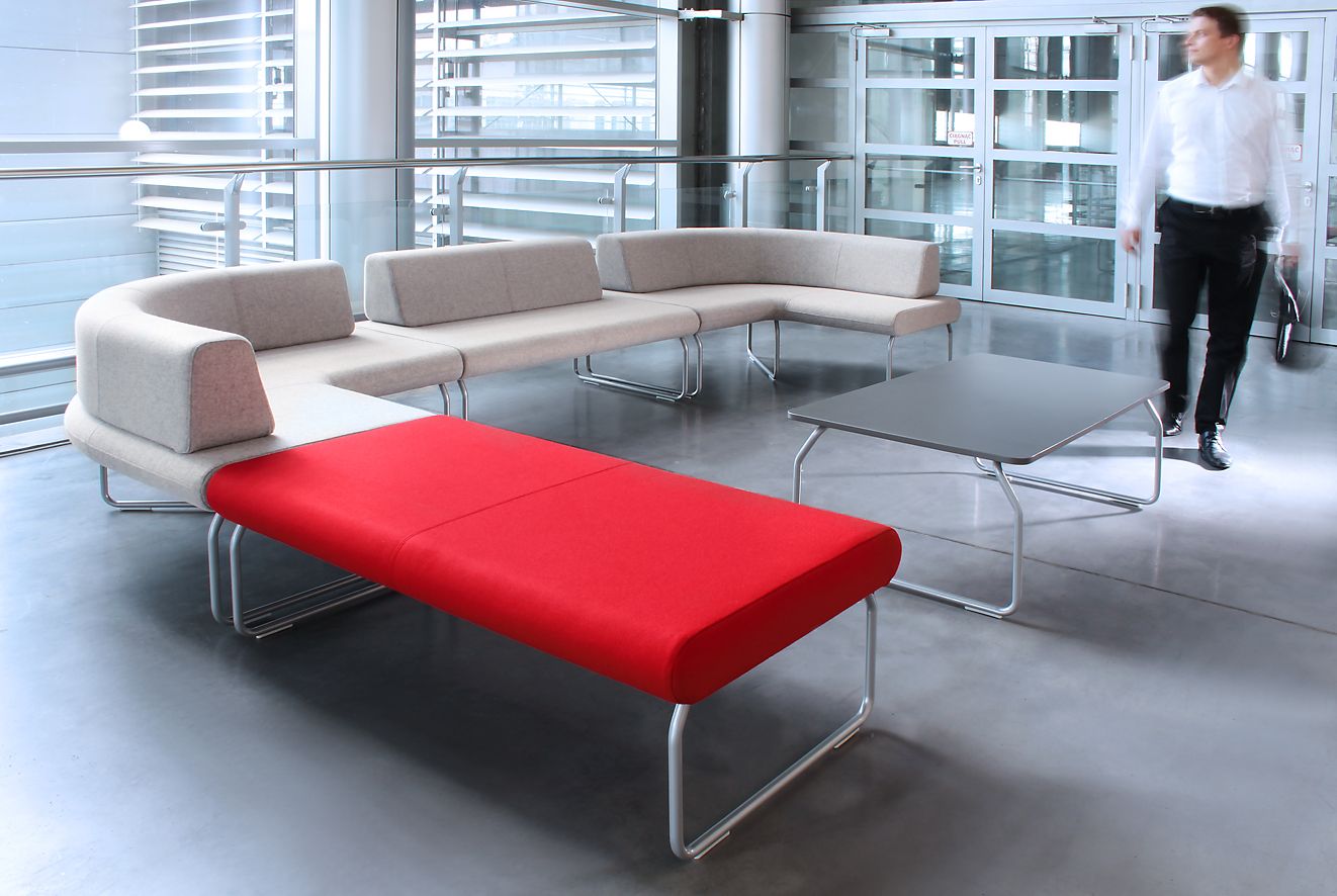 Rozległe płaszczyzny siedzisk i oparć nadają wnętrzu poczucie spokoju, neutralizują napięcia związane z przepływem ludzi we wnętrzach publicznych i ułatwiają pozytywne relacje pomiędzy nieznanymi sobie ludźmi.
