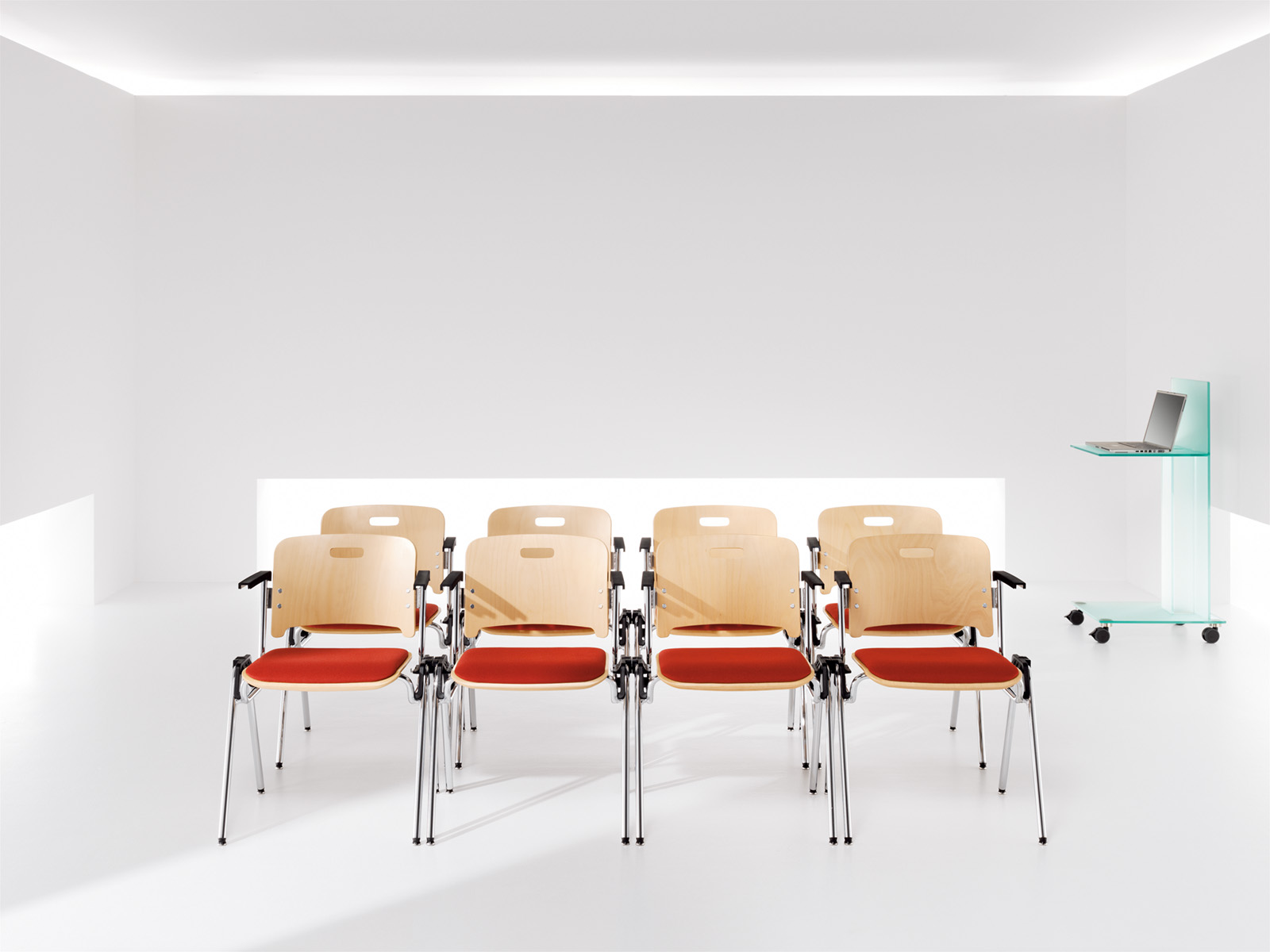 Sprytne STACCATO błyskawicznie i bez trudu zamieni salę bankietową w salę wykładową czy pokój konferencyjny w salę szkoleniową. To wyjątkowo użyteczne krzesła, które łatwo łączyć, przestawiać oraz magazynować na niewielkiej przestrzeni. Ciekawa forma STACCATO powstała w założonym przez Armina Sandera studiu projektowym ITO Design z inspiracji współczesnymi trendami w architekturze. Nowoczesne kształty są jednak podporządkowane niezwykłej funkcjonalności.
