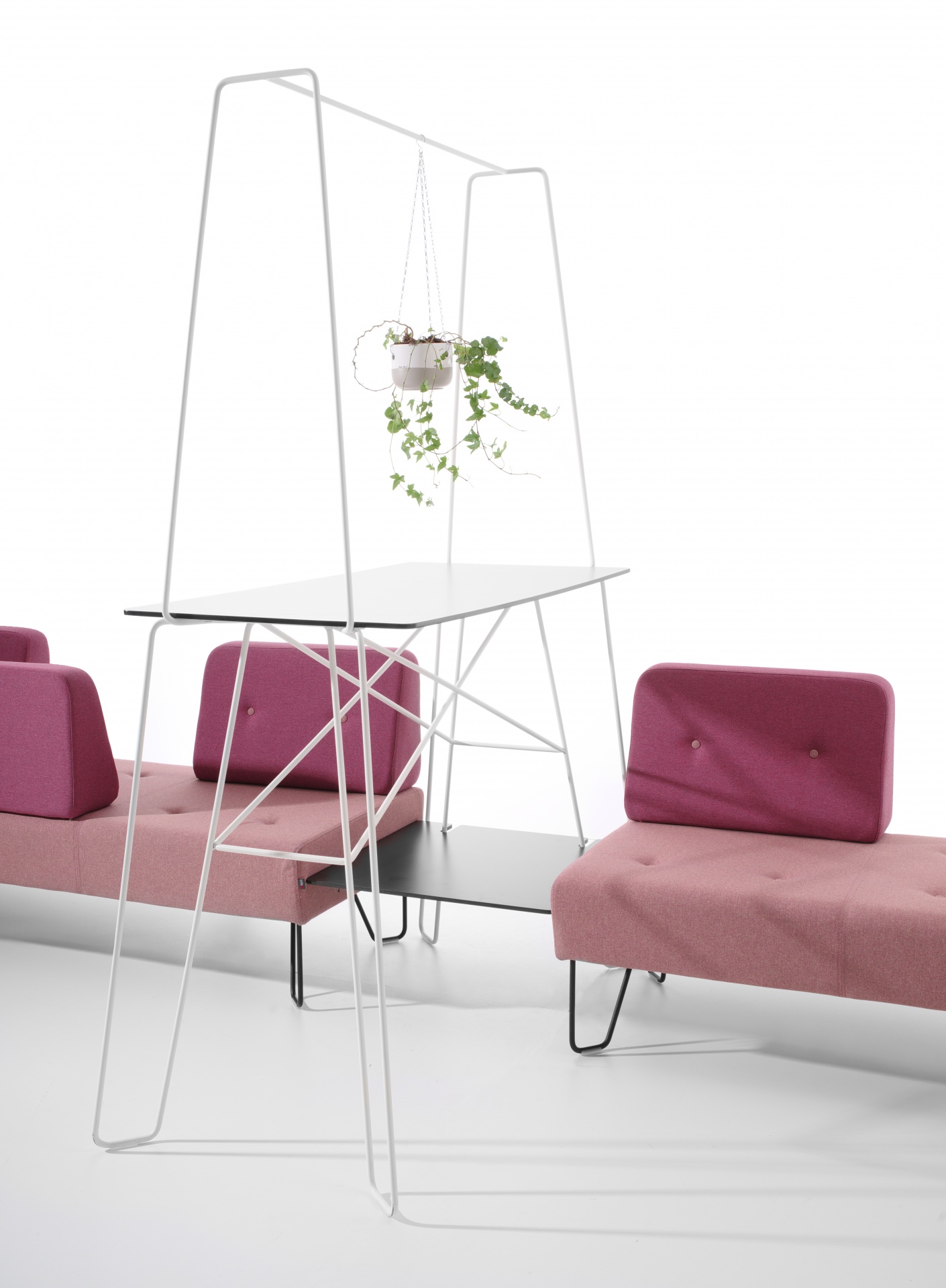 Dodatek wysokich stołów, donic oraz regałów na rośliny pozwalają na doskonałe uzupełnienie przestrzeni, tworząc ciepłą atmosferę oraz komfortowe i ergonomiczne miejsce pracy lub odpoczynku.